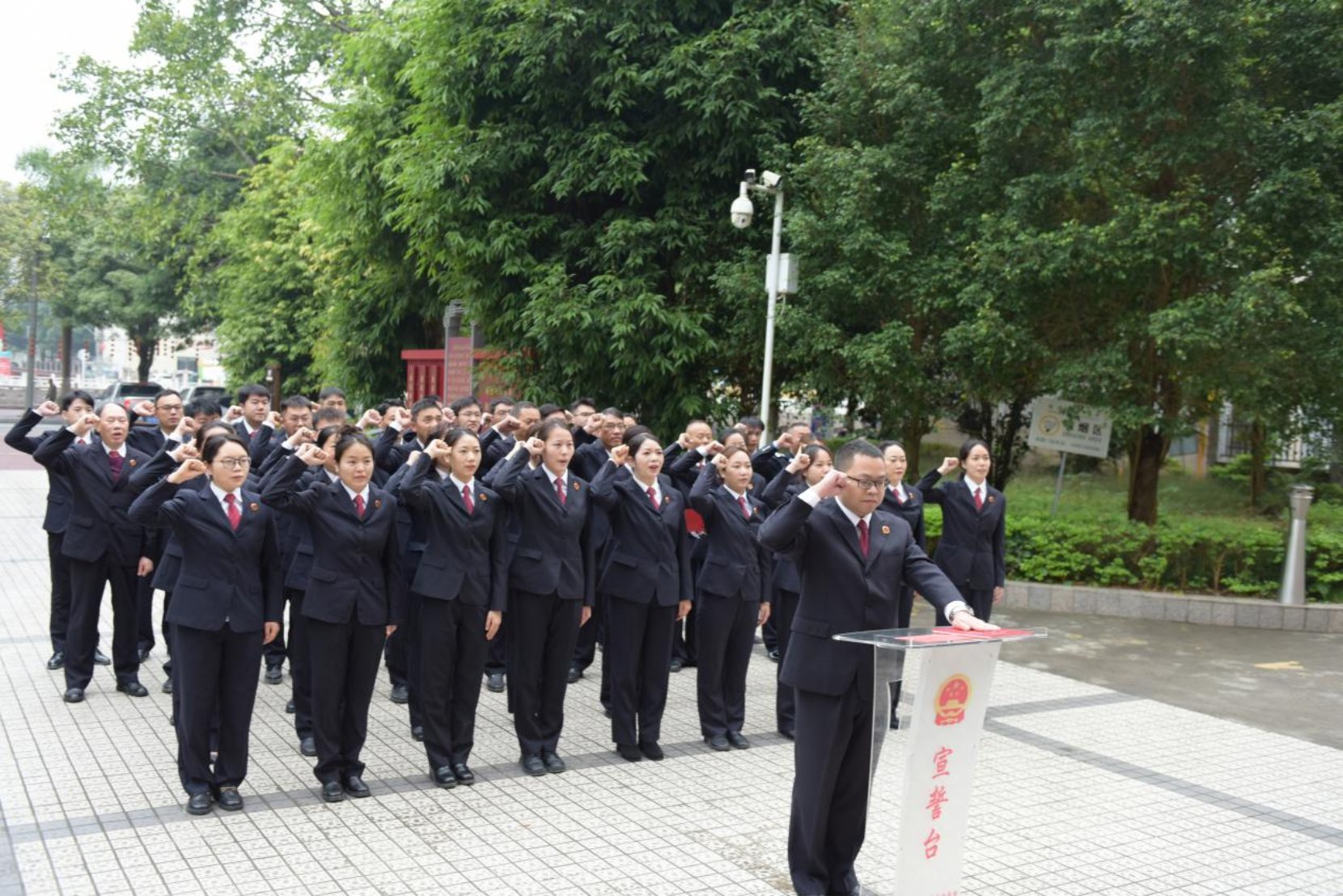 庄严宣誓铸忠诚,初心如磐践使命。“我宣誓:忠于中华人民共和国宪法,维护宪法权威,履行法定职责……”。12月4日,我院组织全体检察人员举行宪法宣誓仪式。宣誓台前,全体人员身着检察制服,高举右拳,在领誓人的带领下,庄严宣誓。铿锵有力的誓言回荡在现场,不仅是对检察人员的一次深刻思想洗礼,更是对坚守法治信仰、践行检察使命的郑重承诺,进一步强化了全体检察人员的宪法意识、责任意识和担当精神。