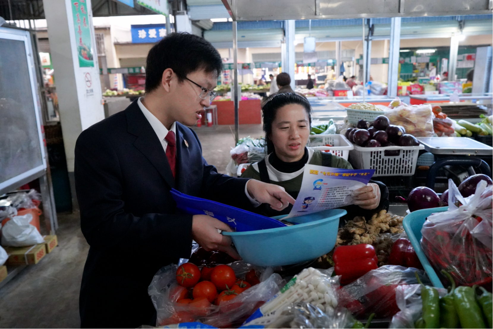 集市普法零距离,法治服务暖民心。针对农村群众法治需求,我院将普法阵地延伸至金虎菜市场。在人流密集的集市区域,搭建宣传台,通过悬挂宣传横幅、发放宪法宣传手册、现场答疑解惑等方式,向过往群众普及宪法知识以及与生产生活密切相关的法律法规。